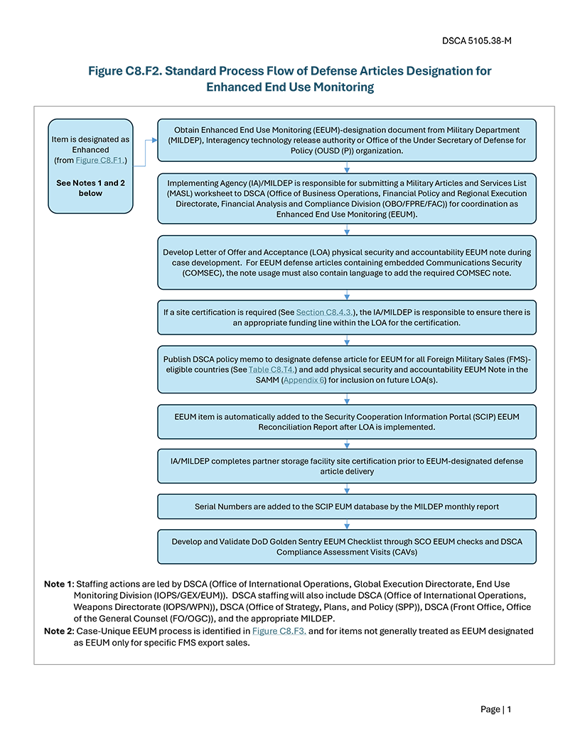 This memorandum revises the Security Assistance Management Manual (SAMM) Chapter 8 on EUM to establish requirements for Focused Verification Checks (FVC) and clarify reporting requirements for potential violations regarding the end use of U.S.-origin defense articles.